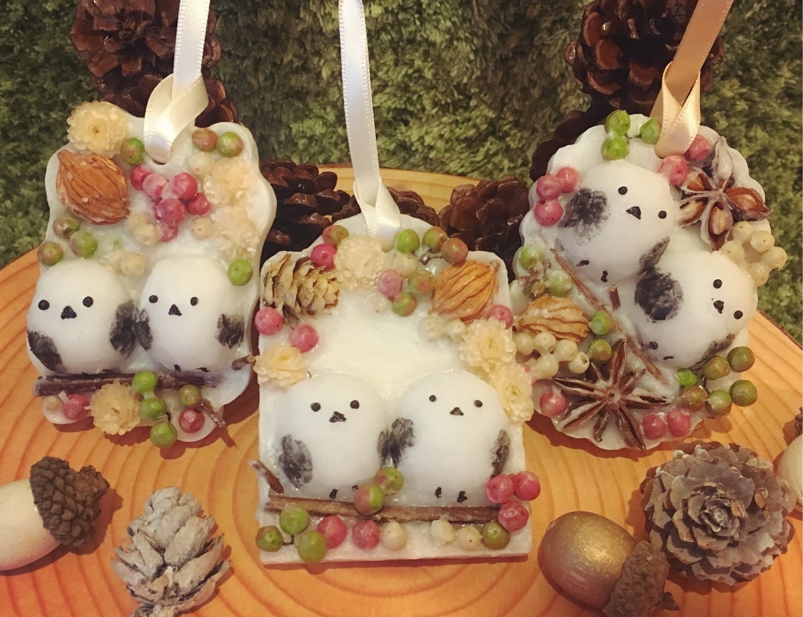 ※受注制作となります。 ※こちらは1個のお値段です。 ※ご入金を確認しましてから、発送迄に10日頂きます。 可愛らしいコロンとしたシマエナガを、アロマワックスの中にお花と一緒に閉じ込めて、サシェにしました。 玄関やお手洗いに飾っておくと、香りがふわっと広がるインテリアになります。 香りを楽しむタイプの灯さないキャンドルです。