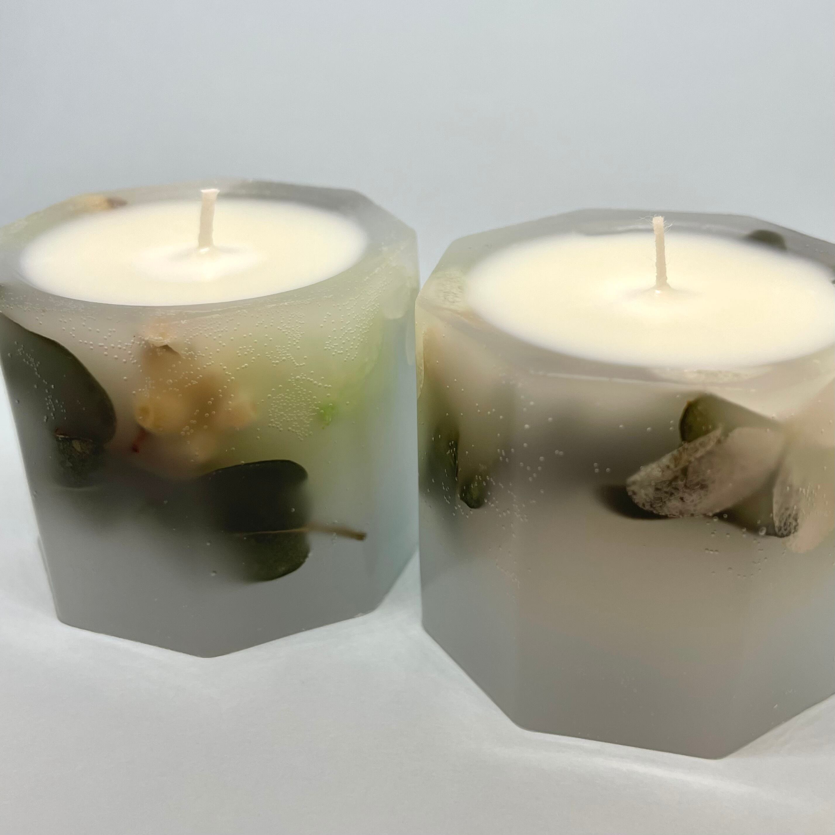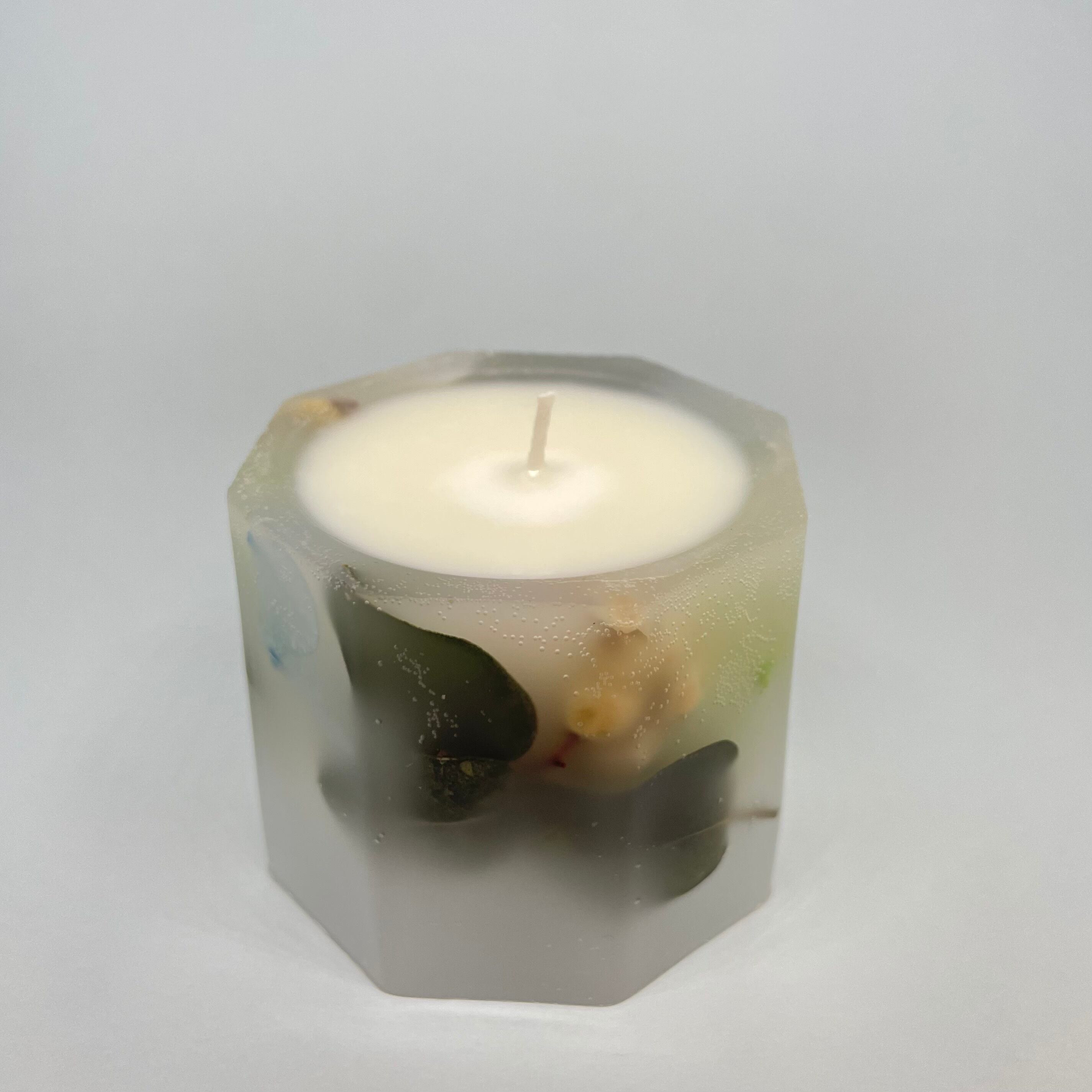 ドライフラワーやプリザーブドフラワーを閉じ込めた、贅沢なキャンドルです。