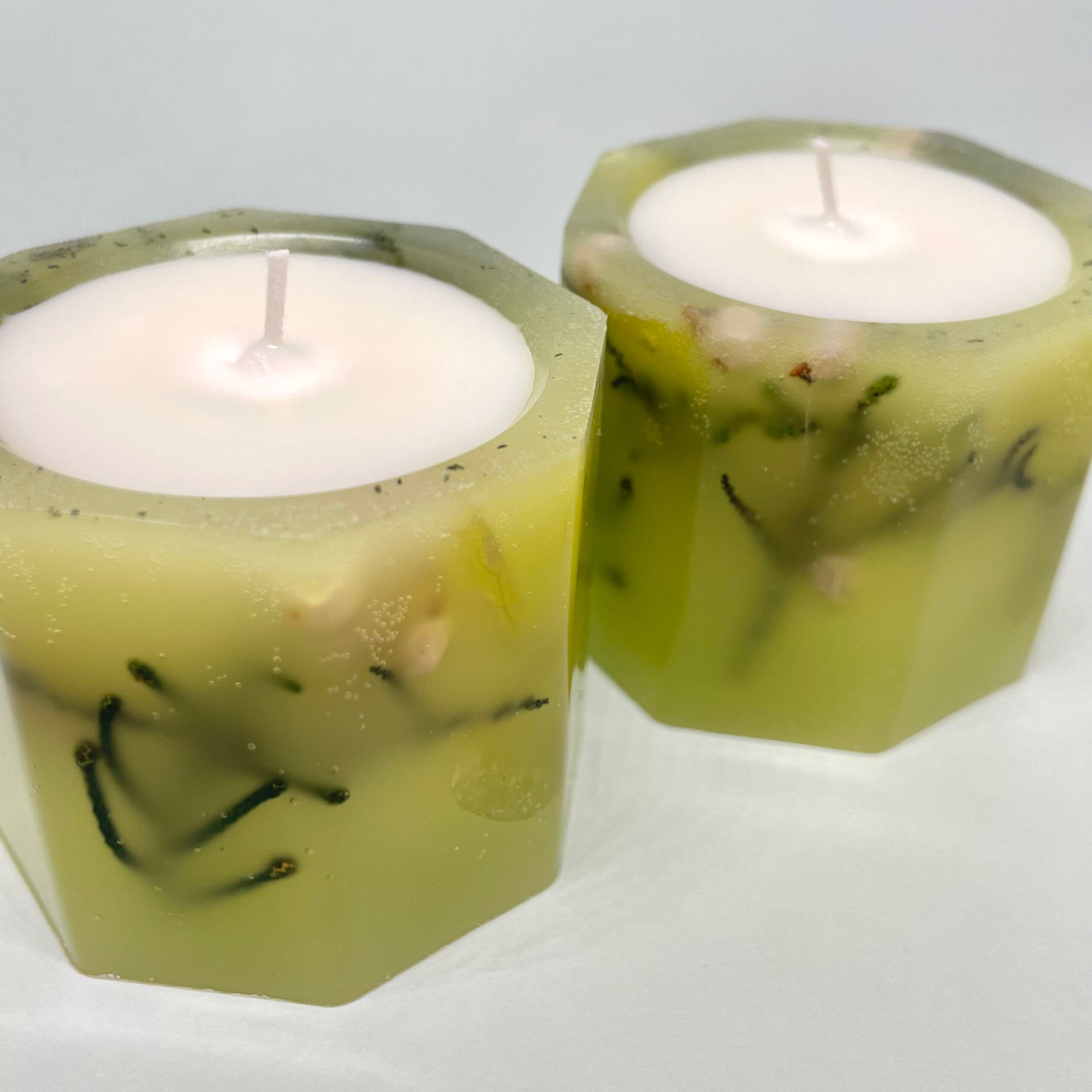 ドライフラワーやプリザーブドフラワーを閉じ込めた、贅沢なキャンドルです。
