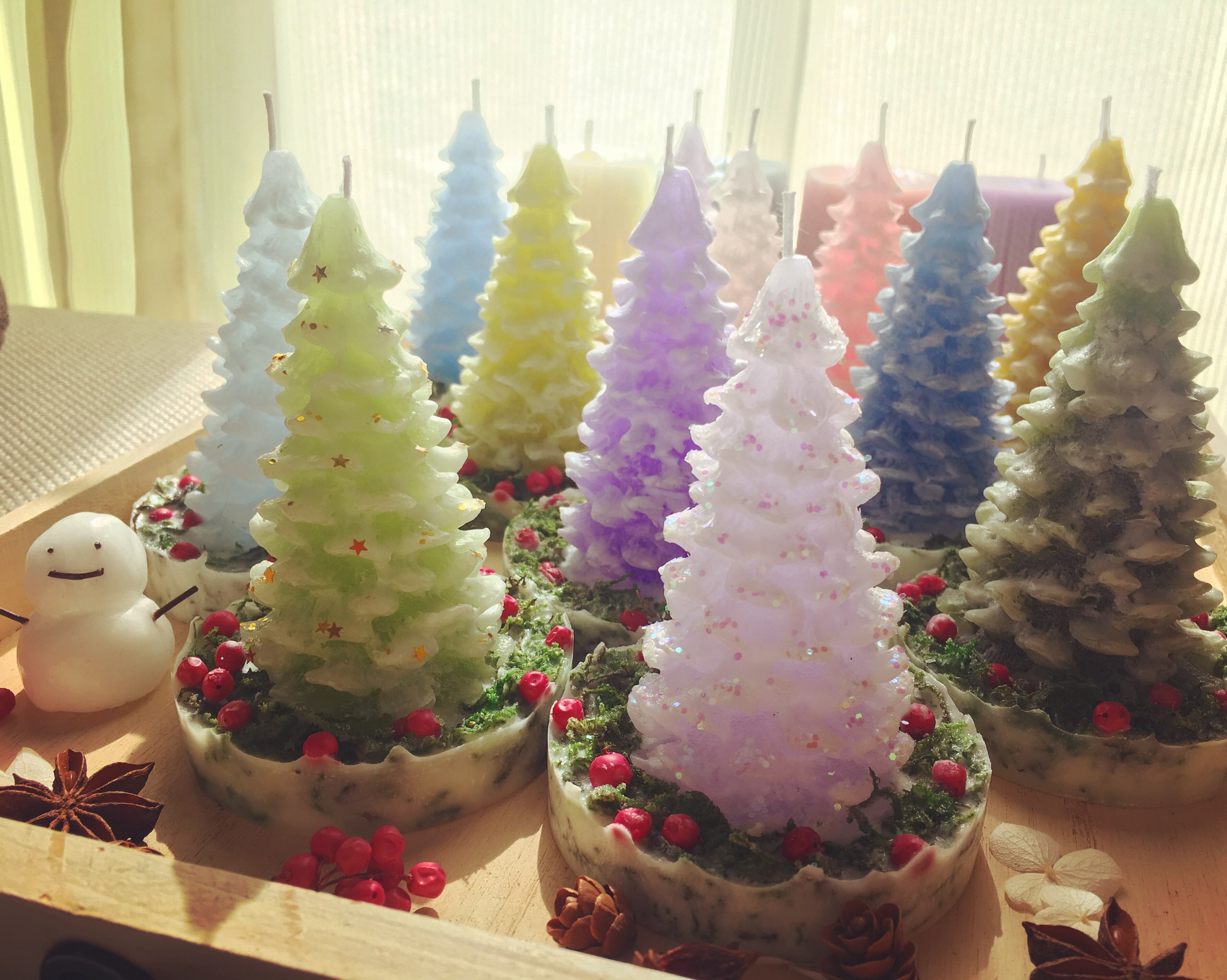 カラフルでかわいい この季節にぴったりのツリーのキャンドルです。