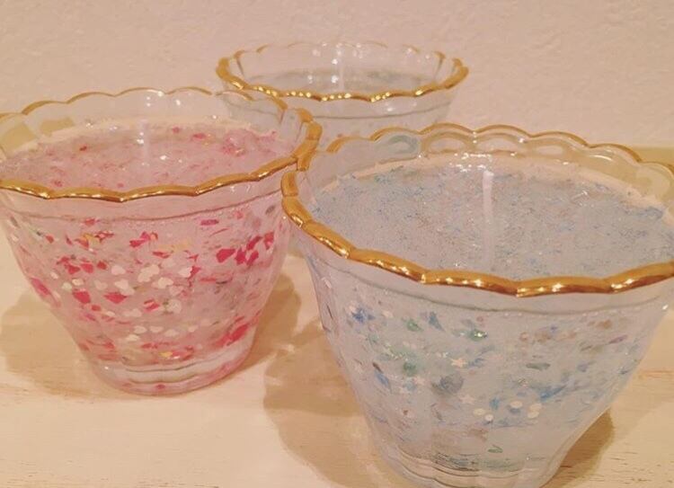 灯すと光りが広がる可愛いキャンドルです♡ 灯していない時も、キラキラとラメが輝いて綺麗です。 ◇ブルー系 ◇レッド系 ◇♡or☆ お好きな色をお選びいただき、備考欄にご記入ください。